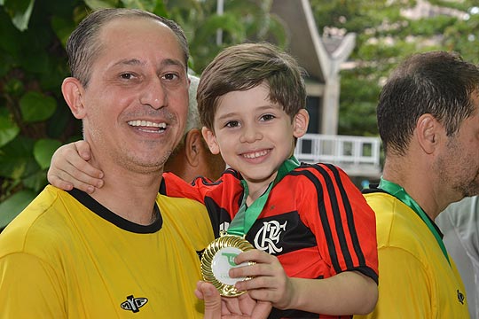 Flávio e o pequeno rubro-negro na festa da vitória